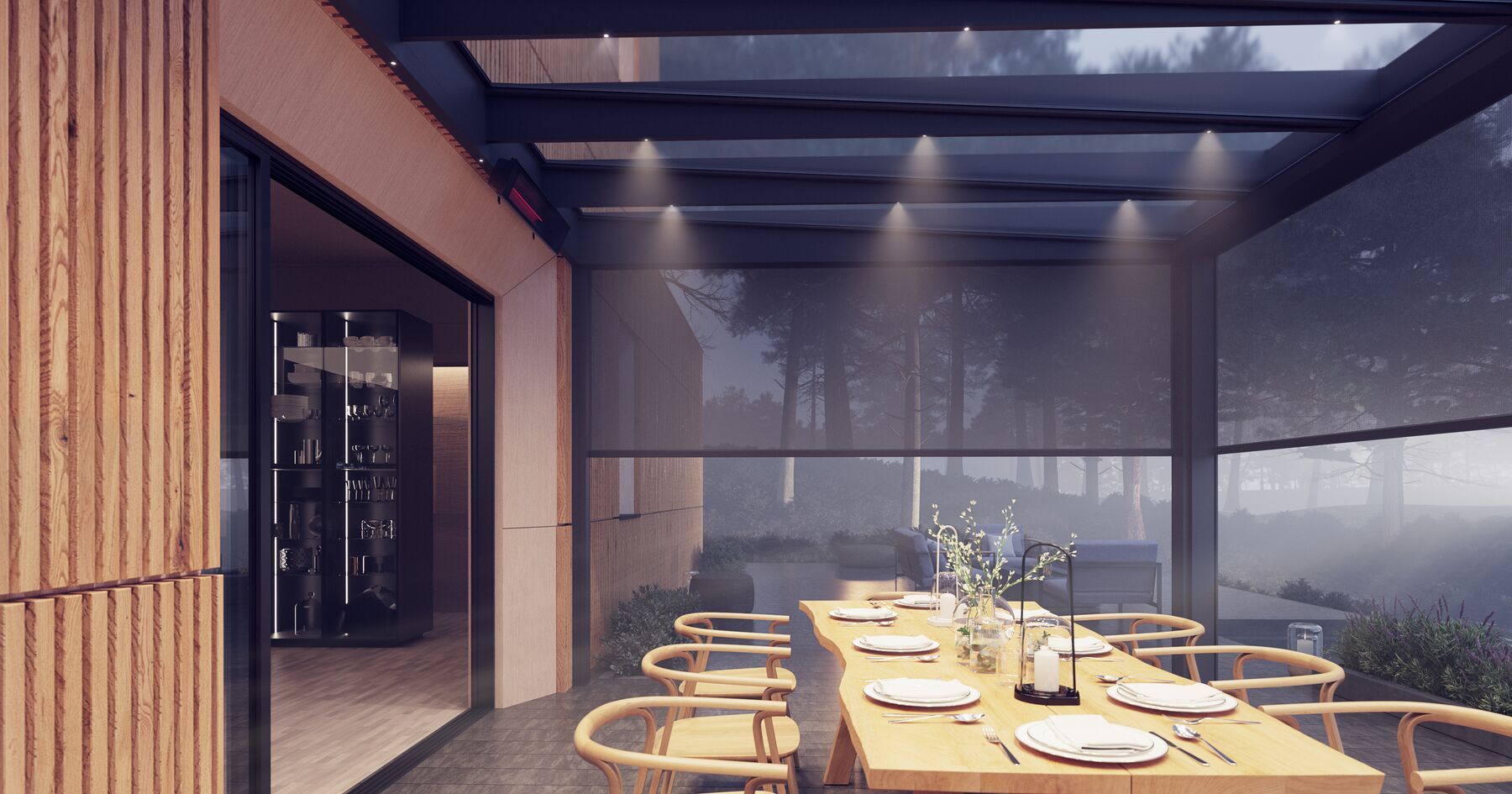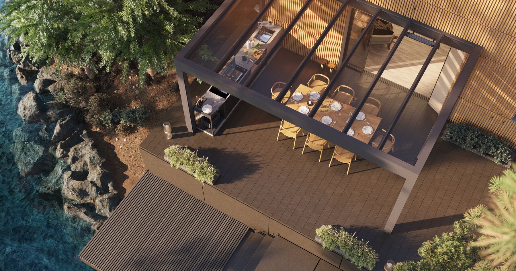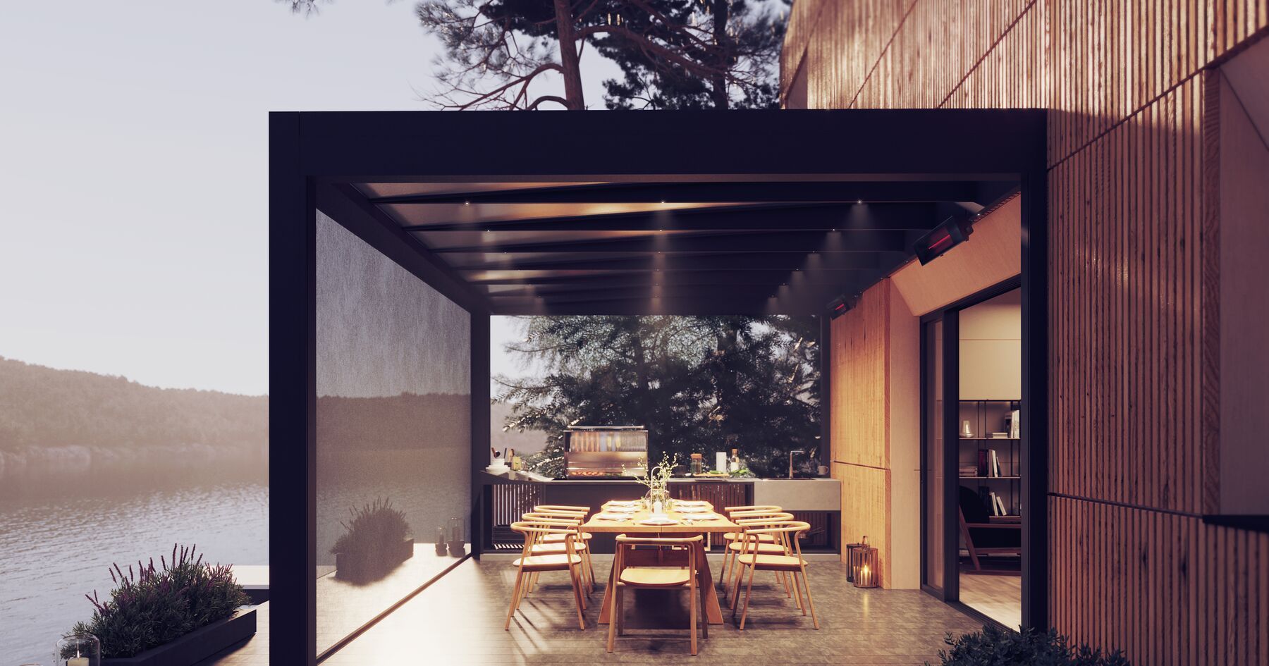 Die B720 ist ein innovatives Konzept von Brustor, das weiterentwickelt wurde, um neue Möglichkeiten für die Terrassenüberdachung der Zukunft zu schaffen. Die Kombination aus einem festen Dach und einem Lamellendach macht dies möglich. Für den festen Dachbereich können Sie zwischen Paneelen aus Glas, Polycarbonat oder Sandwichpaneelen wählen. Der zweite Teil des Daches besteht aus kippbaren XL-Lamellen vom B200XL.